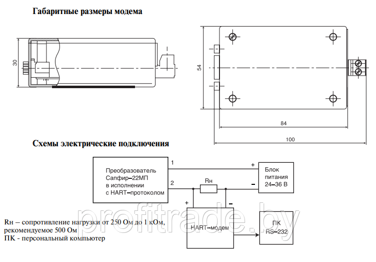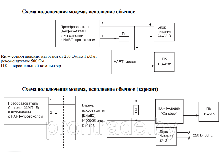 Модем обеспечивает передачу и приём HART-сигналов на скорости ................................9600 бод